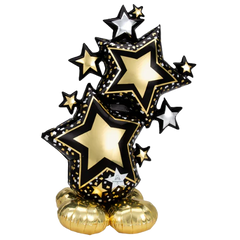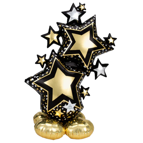 59" Anagram Star Cluster Black & Gold Airloonz Foil Balloon
